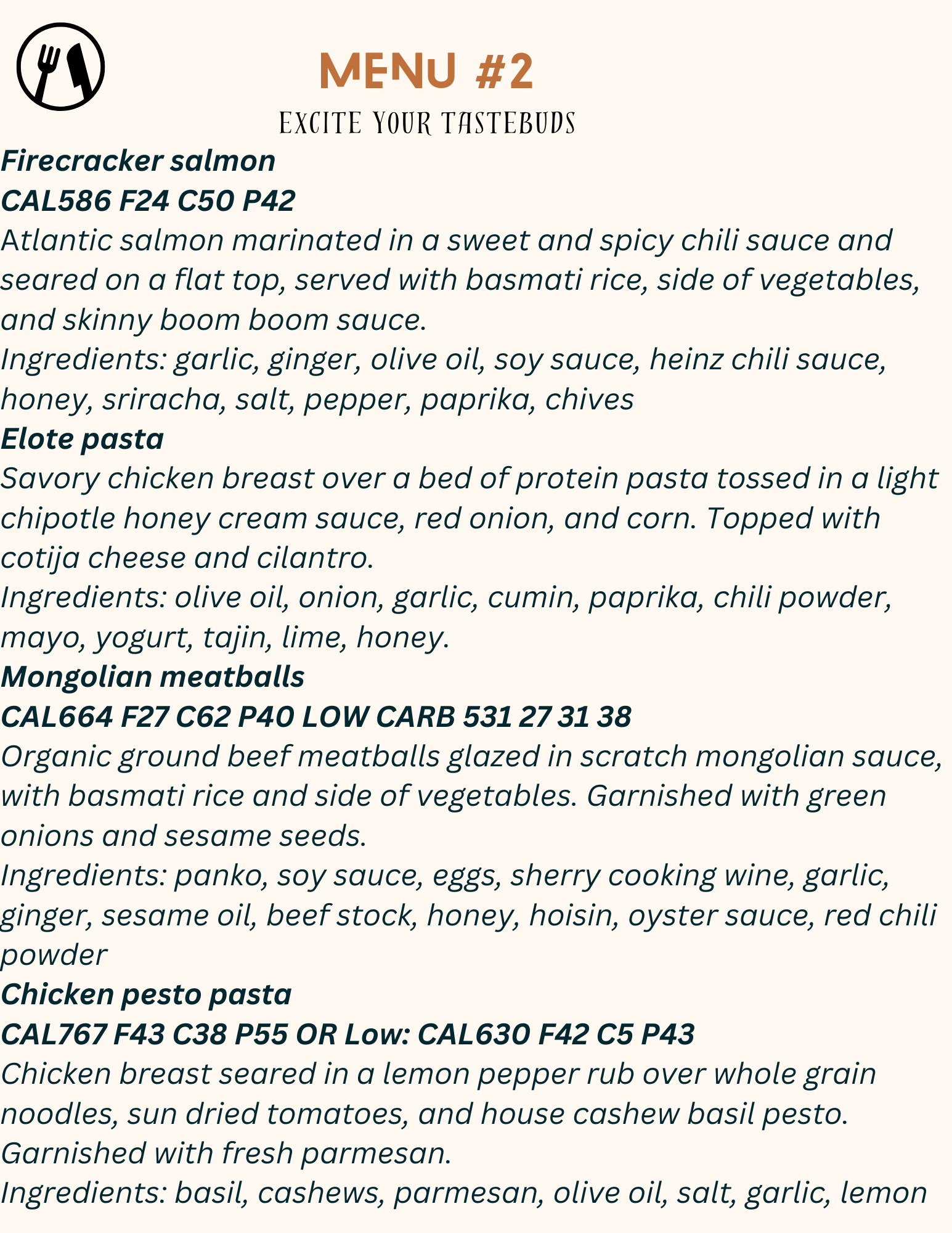 Pricing varies depending on meal size and modifications (example: Extra protein, low carb) Prices populate in cart.